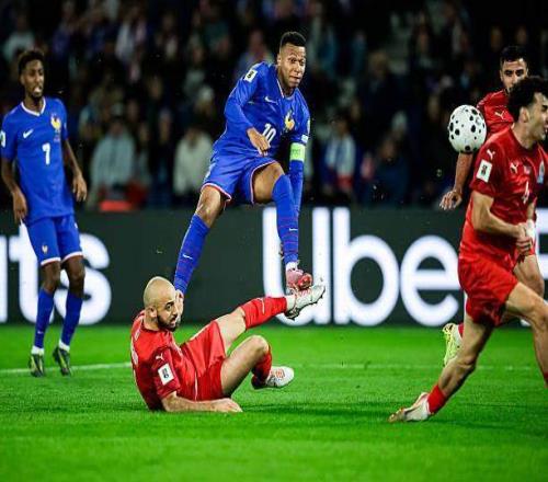然而,法国队在比赛上半时迟迟无法打开局面。如果注意观察德尚选择的442阵型,可以发现,他既有不得已而为之的背景因素,也有把不得罪豪门放在重要位置的考虑。在整个左边路,德尚安排的是特奥和科芒的搭档,这两人都在今年夏天离开欧洲去沙特淘金,德尚让他们首发,除了考察他们的状态,还在于——如果有人受伤,他们的俱乐部要更容易对付一些。