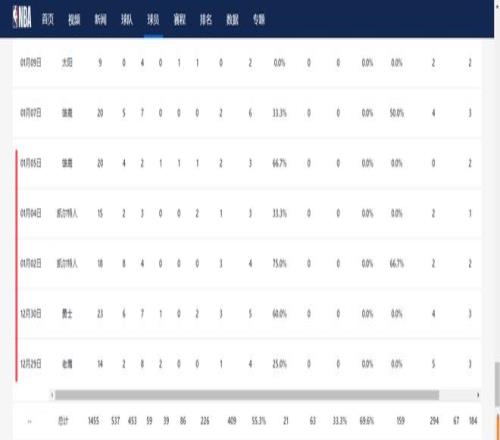 场均数据为18分钟得到4.4分4.8篮板0.8助攻,投篮命中率52%