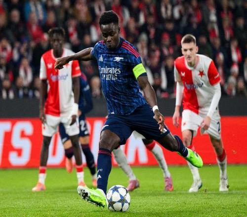狂攻不止的阿森纳,在第32分钟造成了对方球员禁区内手球,主裁判回看VAR后,给了枪手一粒点球,萨卡主罚命中,帮助球队取得了1-0的领先,凭借此球,萨卡也成为了欧冠改制后,阿森纳队史首位连续四个欧冠客场取得进球的球员。