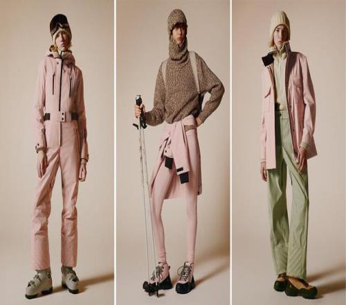 百搭的中性叠穿造型包含许多亮眼元素,如滑雪版的Nuptse半开襟套头夹克和Traveller夹克,均以三层Bristol科技面料重新演绎,该面料是由品牌研发的一种创新型防泼水及防风面料,经Clima System技术处理,具有良好的热调节性能。本系列其他创新型高科技单品包括Adelboden款上下装,采用Wool Cash Melange Clima System面料;以及Lavazei款上下装,由真丝、羊绒和初剪羊毛混纺而成,采用微型提花针法,表面呈现出锯齿状像素效果和冷灰色调。滑雪衣橱中还有Nanga滑雪服套装、Bansko背带裤,以及羊绒和Cashfur针织品,采用迷迭香色、鼠尾草色、棕色和带沙色点缀的黑色。
