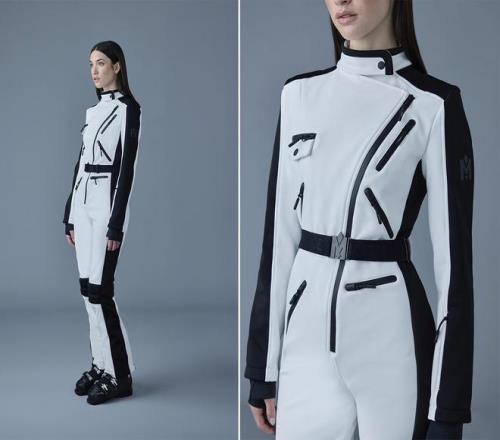 右:MACKAGE男士连帽碎冰蓝滑雪羽绒服FROST-FP及男士背带碎冰蓝滑雪裤KENYON-FP