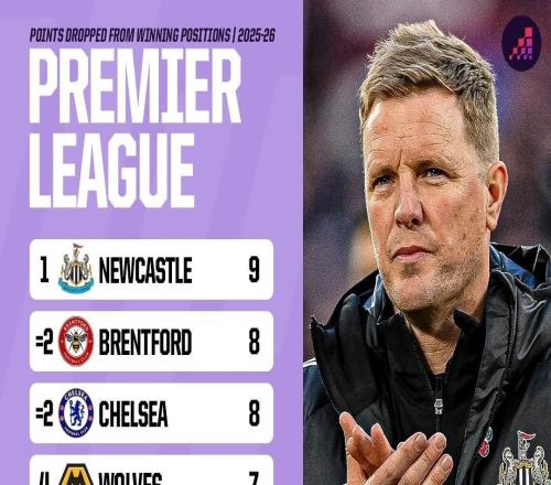 英超从领先位置丢分排名:纽卡居首,蓝军、小蜜蜂并列次席 -